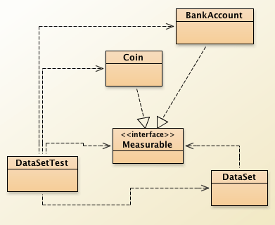 UML notation distinguishes between object diagrams and class diagrams. In an object diagram the class names are underlined; in a class diagram the class names are not underlined. In a class diagram, you denote dependency by a dashed line with a shaped open arrow tip that points to the class that is dependent on. Figure 1 shows a class diagram indicating that the CashRegister class depends on the Coin class.