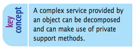 They are not intended to provide services directly to clients outside the class. Instead, they exist to help the translate method, which is the only true service method in this class, to do its job. By declaring them with private visibility, they can- not be invoked from outside this class.
