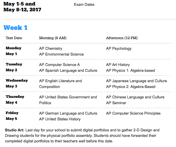 APs Exams Week 1