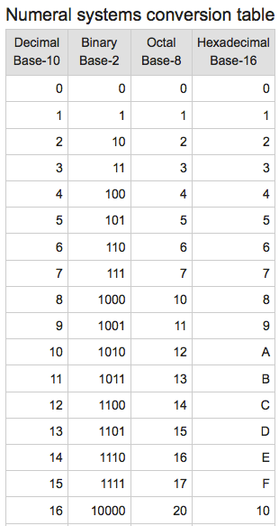 NumberSysTable